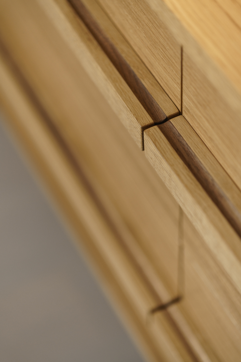 Dębowa komoda Autor projektu: Loft Kolasiński Autor zdjęć: Karolina Bąk nowoczesny design wykonana z litego dębu frezowane pochwyty z drewna ręczne wykończenie elementów drewnianych – olejowosk marki Osmo Udostępnij projekt